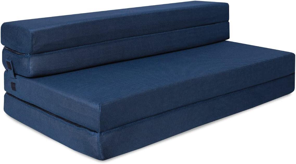 Folding Mattress Foam Trifold Sofa Bed Floor Portable Sleeping Mat Camp Guest Cushion Extra Thick Washable Bamboo Cover