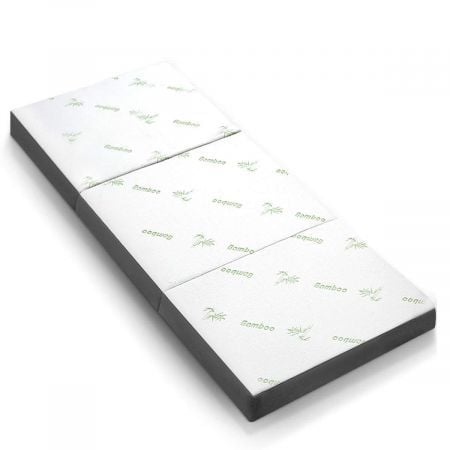 Folding Mattress Single Trifold Memory Foam Sofa Bed Portable Sleeping Floor Mat Camping Travel Cushion Extra Thick Bamboo Cover