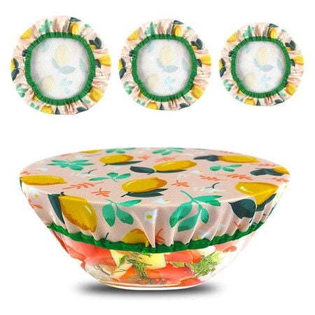 3 Pcs Elastic Bowl Cover Set Cotton Bowl Covers Washable Reusable Food Storage Covers Fabric Bowl Lid for Food Fruit Bread Remnants Suitable, Orange