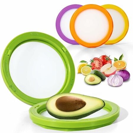 4 Pack Reusable Silicone Food Saver Lids Fruit And Vegetable Storage For Fridge Ideal For Avocado,Tomato,Garlic,Onions,Lemons,And Potatoes