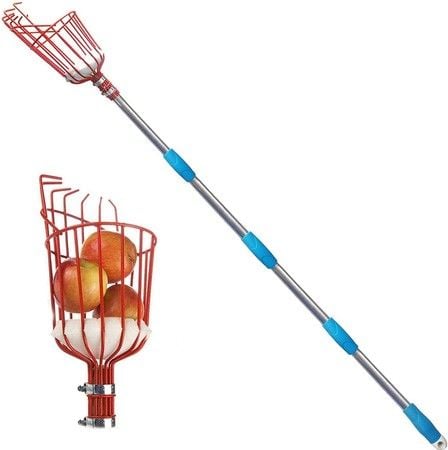 8Ft Height Adjustable Fruit Picker Tool with Big Basket, Light Weight Stainless Steel Pole for Picking Fruits