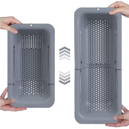 Over the Sink Colander Strainer Basket Wash Vegetables and Fruits Drain Cooked Pasta and Dry Dishes Kitchen Essentials- Gray