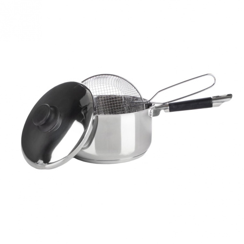 MGE World - Deep Fat Fryer Set Stainless Steel Chip Pan Induction Pot Frying with Basket Ø 16 cm