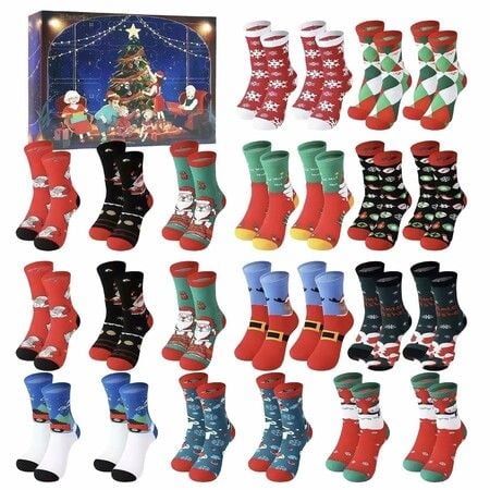 24 Pairs Christmas Socks Advent Calendar Cuddly Socks Funny Socks Cotton,Christmas Calendar with 12 Surprises Christmas Socks Gift Set