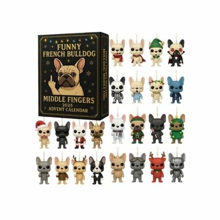 Funny Middle Finger French Bulldog Advent Calendar 24 Days Christmas Countdown Blind Box with Surprise Gift for Dog Lovers