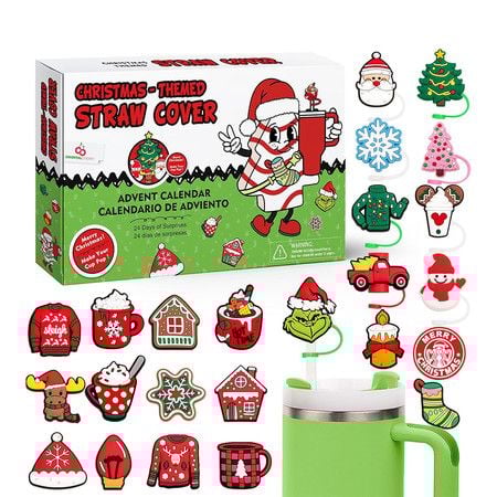 Advent Calendar, Christmas Countdown Calendars 24 Days of Surprises with 10mm Straw Toppers, Straw Cover Caps Funny Gifts for Cup 30Oz 40Oz Tumbler Kids Teens Boys Girls Men Women