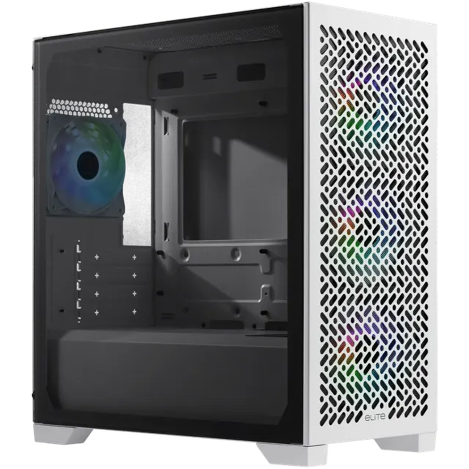 Cooler Master Elite 490 White mATX Tower Gaming Case Tempered Glass, 3x 120mm ARGB Fan Pre-installed CPU Cooler Support Upto 170mm, GPU Support Upto 425mm, 5x PCI Slot, 360mm Radiator Supported, Front I/O: 1x Type C, 2x USB, HD Audio