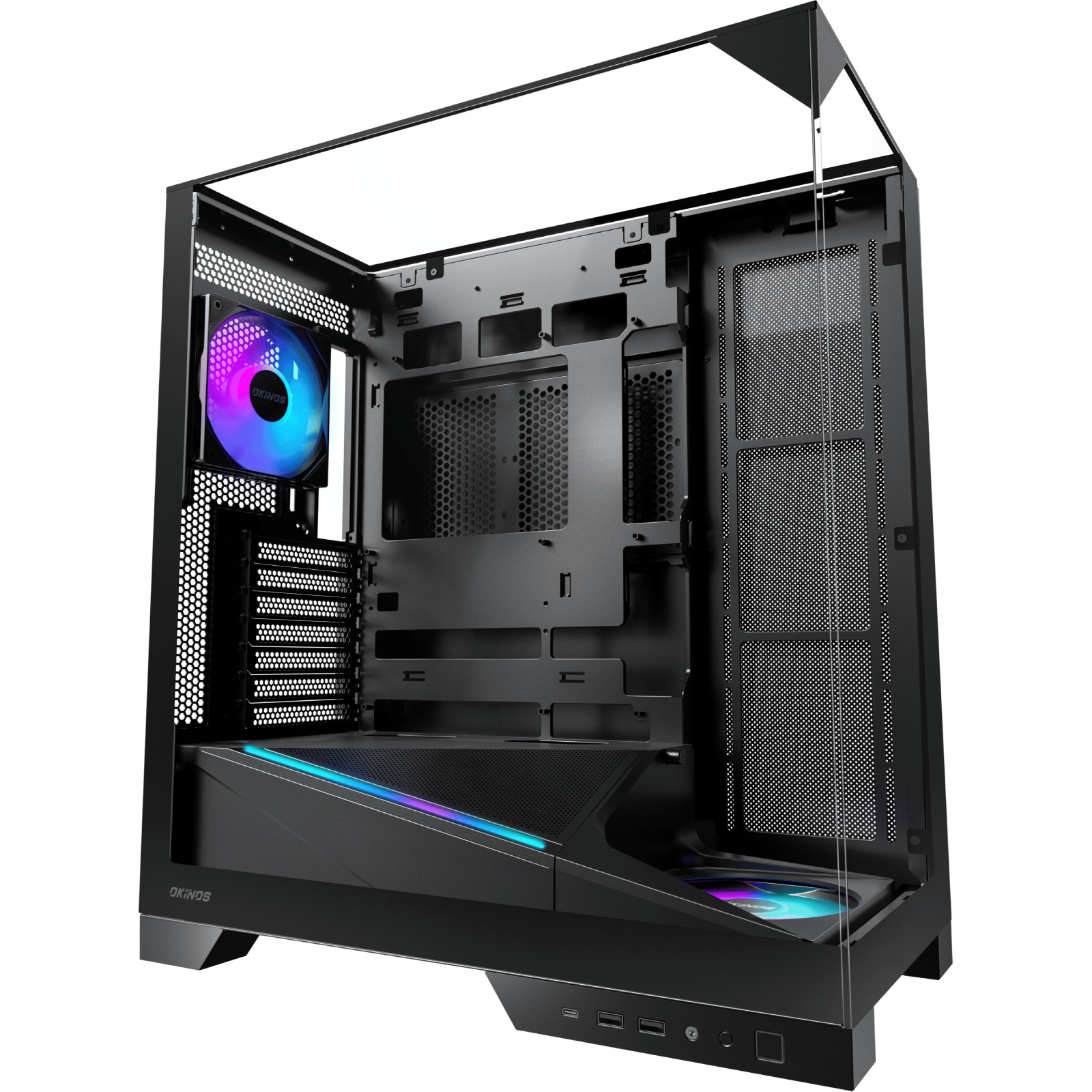 OKINOS Aqua 93 Black MidTower ATX Gaming Case Tempered Glass, 2x 120mm ARGB Fans Pre-Installed, CPU Cooler Support Upto 170mm, GPU Support Upto 420mm, 7x PCI Slot, 360mm Radiator Supported, Front I/O: 2x USB, 1x Type C, HD Audio