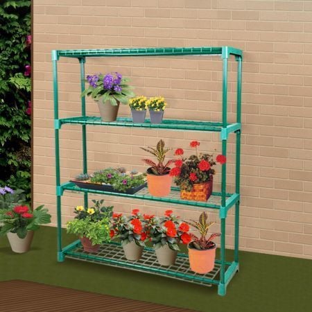 2x 4 Tier Plant Shelve Garden Greenhouse Steel Storage Shelving Frame Stand Rack