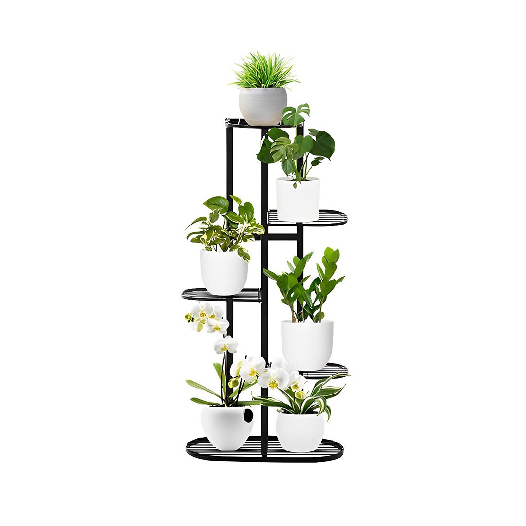 SOGA 7 Tier 8 Pots Black Metal Plant Rack Flowerpot Storage Display Stand Holder Home Garden Decor - - FPotH23