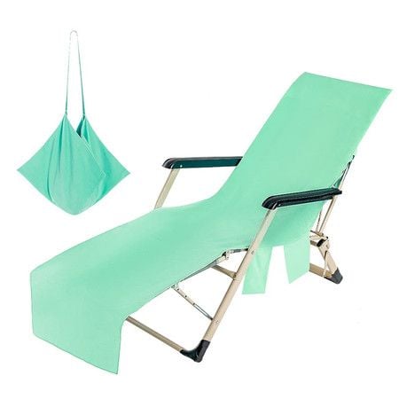 1PC Solid Color Quick Dry Beach Chair Cover Holiday Garden Swimming Pool Lounger Chairs Cover with Storage Pocket Color Green