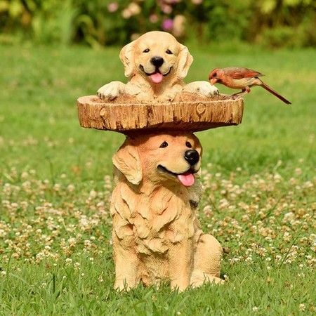 Dog Bird Feeder Resin Statue Figurine Decoration Animal Living Room Candy Plate Storage Garden Home Decor