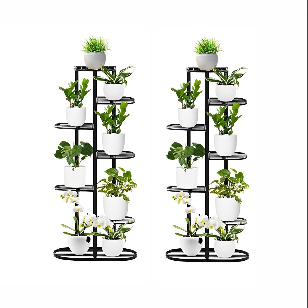 SOGA 2X 7 Tier 8 Pots Black Metal Plant Rack Flowerpot Storage Display Stand Holder Home Garden Decor - - FPotH23X2