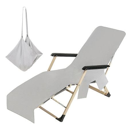 1PC Solid Color Quick Dry Beach Chair Cover Holiday Garden Swimming Pool Lounger Chairs Cover with Storage Pocket Color Grey