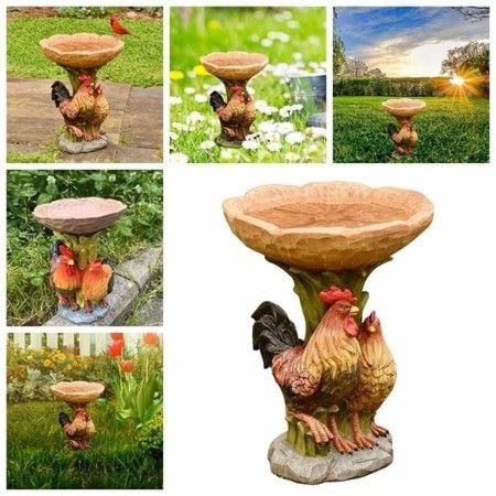 Rooster Bird Feeder Resin Statue Figurine Decoration Animal Living Room Candy Plate Storage Garden Home Decor