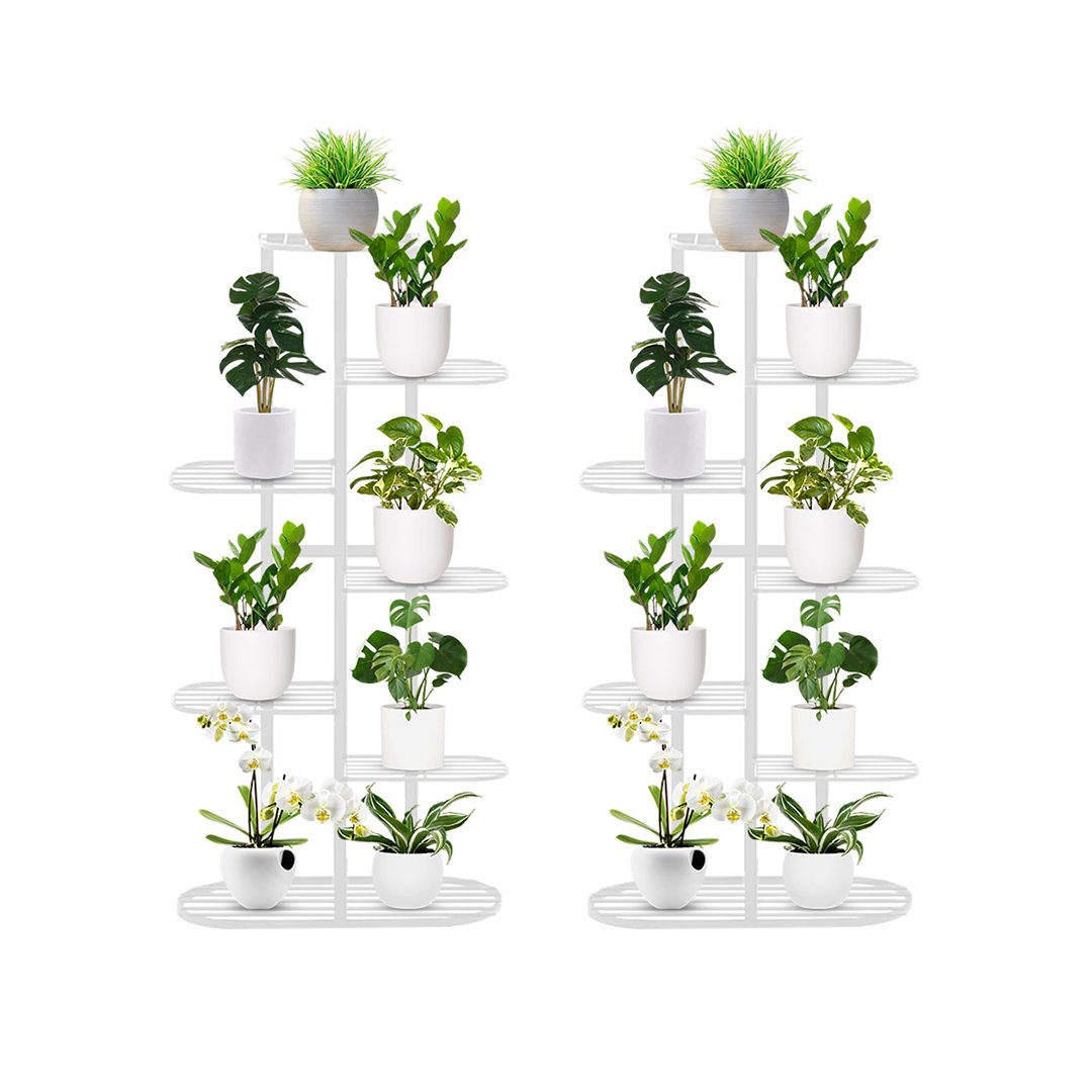 SOGA 2X 7 Tier 8 Pots White Metal Plant Rack Flowerpot Storage Display Stand Holder Home Garden Decor - - FPotH34X2