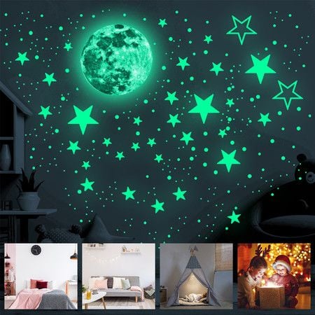 Glow in The Dark Stars Stickers Moon for Kids Bedroom,Luminous Stars Stickers Create a Realistic Starry Sky,Room Decor,Wall Stickers