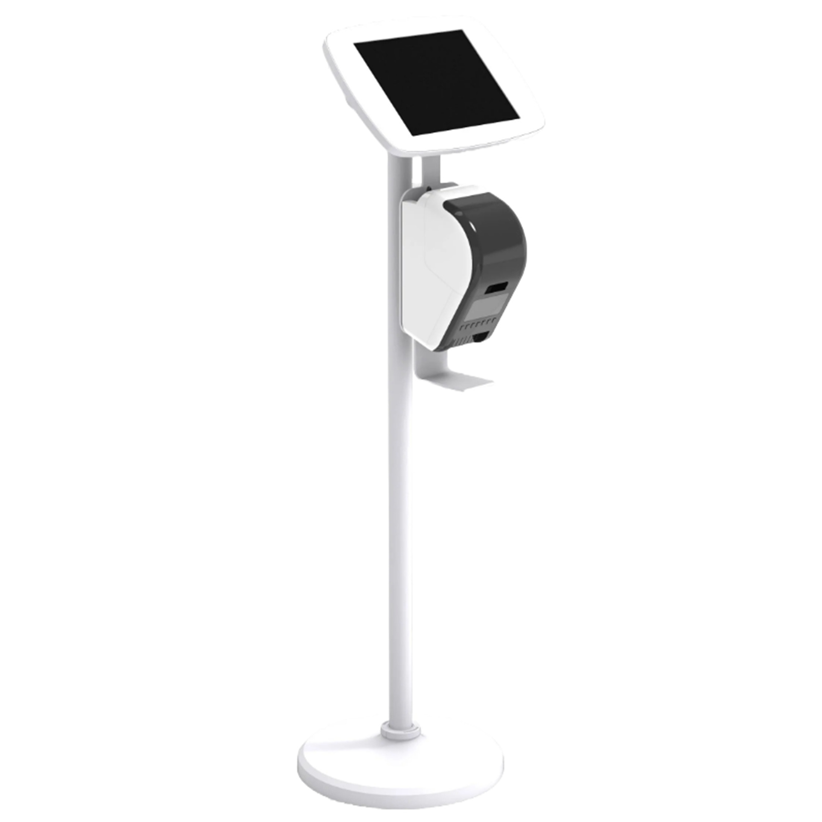 Bouncepad BP-FST/PRNT112-CCW Floorstand + Brother Printer Bracket - iPad 10.2 8-9th Gen White Covered Home Button & Front Camera