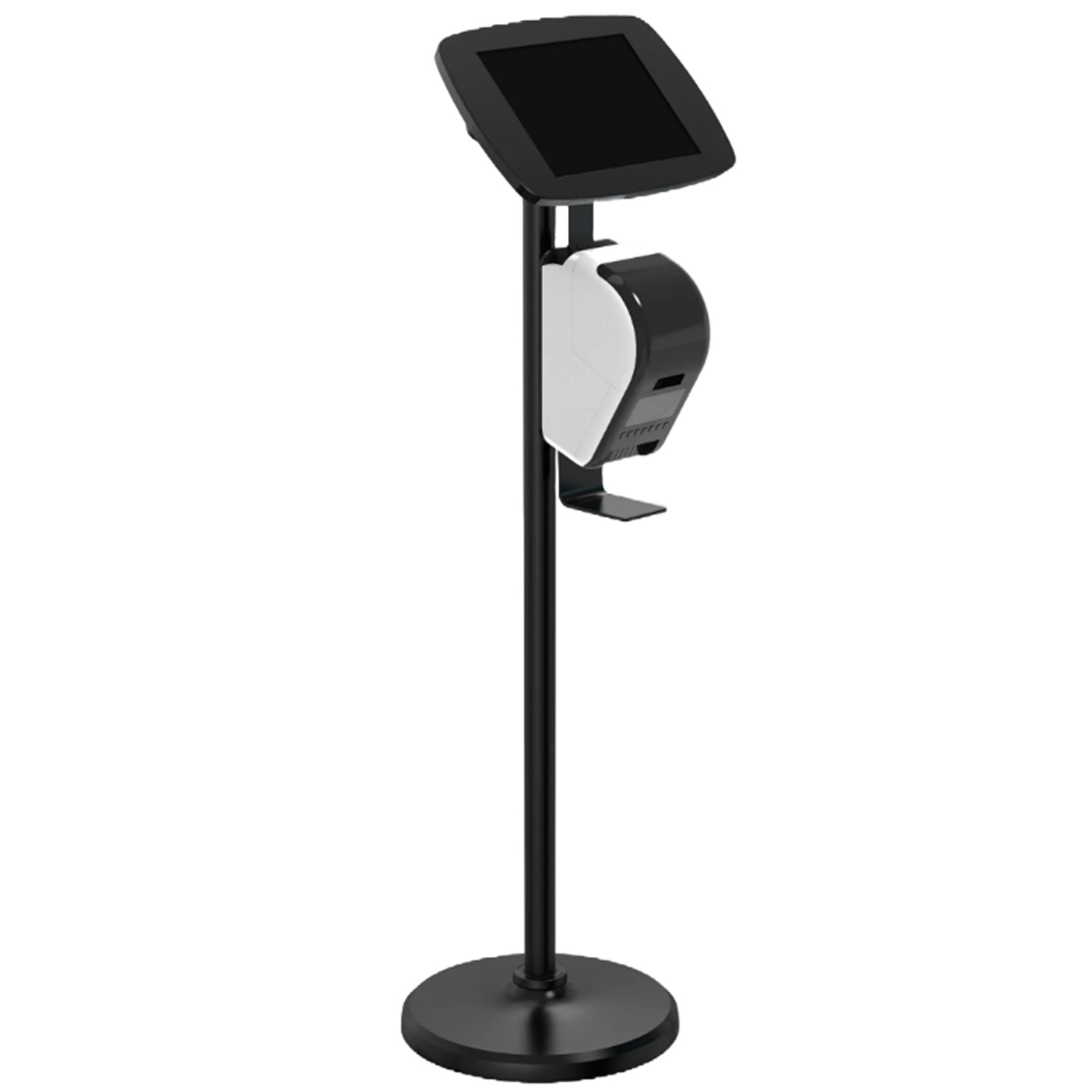 Bouncepad BP-FST/PRNT112-CCB Floorstand + Brother Printer Bracket - iPad 10.2 8-9th Gen Black Covered Home Button & Front Camera