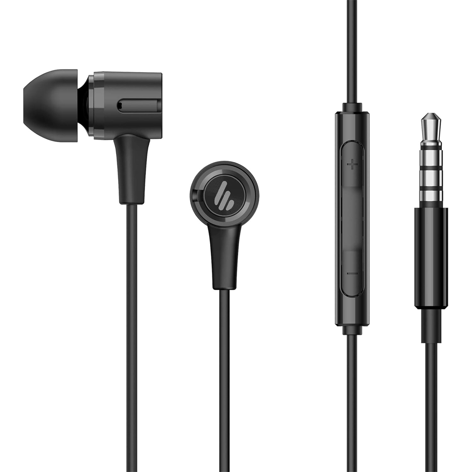 Edifier P205 Wired Earbuds - Black with 3-button Remote - 3.5mm Jack - 8mm drivers - High-sensitivity omnidirectional microphone - 3x eartip sizes included