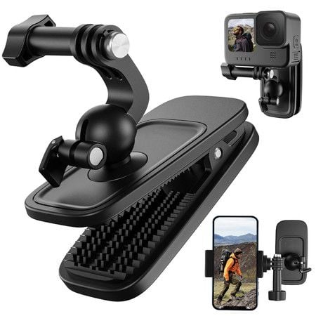 360 Swivel Clip Backpack Mount with Ball Head Pivot Bag Shoulder Body Strap Holder Attach for GoPro Max-Black