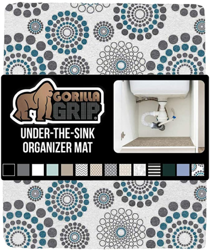 Gorilla Grip Under Sink Mat Liner, Waterproof Cabinet Protection, Absorbent Shelf Liner (24x50) Grey Turquoise Spiral, Non-Adhesive & Machine Washable