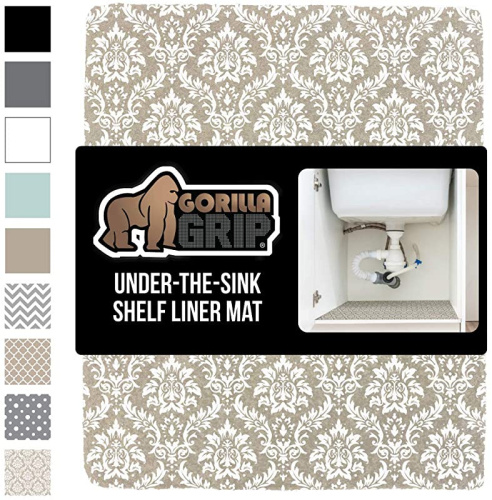 Gorilla Grip Original Under Sink Mat Liner, Damask Taupe & Cream, Waterproof Absorbent Non‑Adhesive Shelf Liner 60cm x 150cm