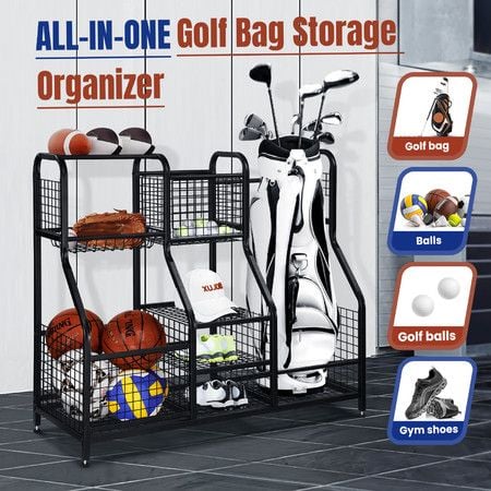 Large Golf Bag Ball Storage Rack Sports Gear Equipment Organiser for Basketball Football Home Gym Garage Shelves Holder Stand