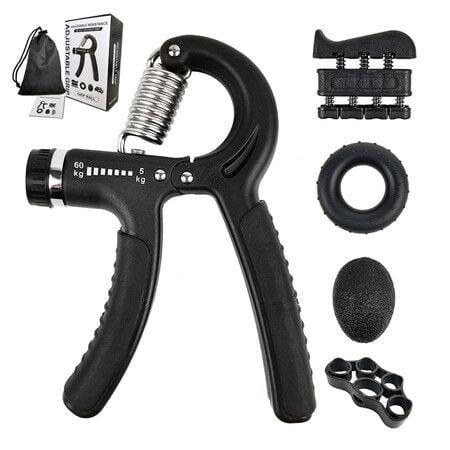 Hand Grip Strengthener Exercise Kit with 5 Pieces, Hand Exerciser for Men Women, Finger Stretcher, Stress Relief Ball, for Grip Strength Training, Black