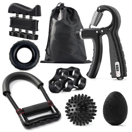 Hand Grip Strengthener Adjustable Forearm Workout Finger Strength Training Exerciser Trainer Kit 7 Pcs