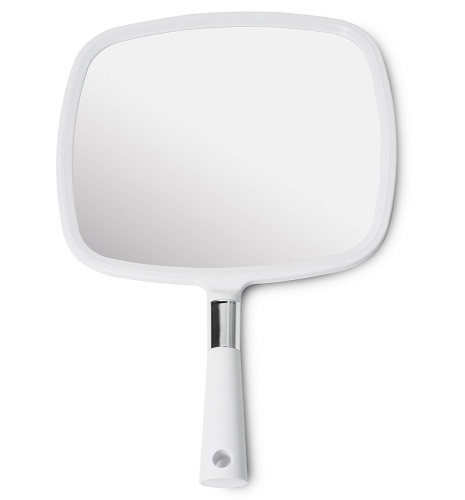Mirrorvana Large Hand Mirror (White) – Comfy Grip & Hanging Hole, Distortion-Free Shaving Makeup for Salons Home