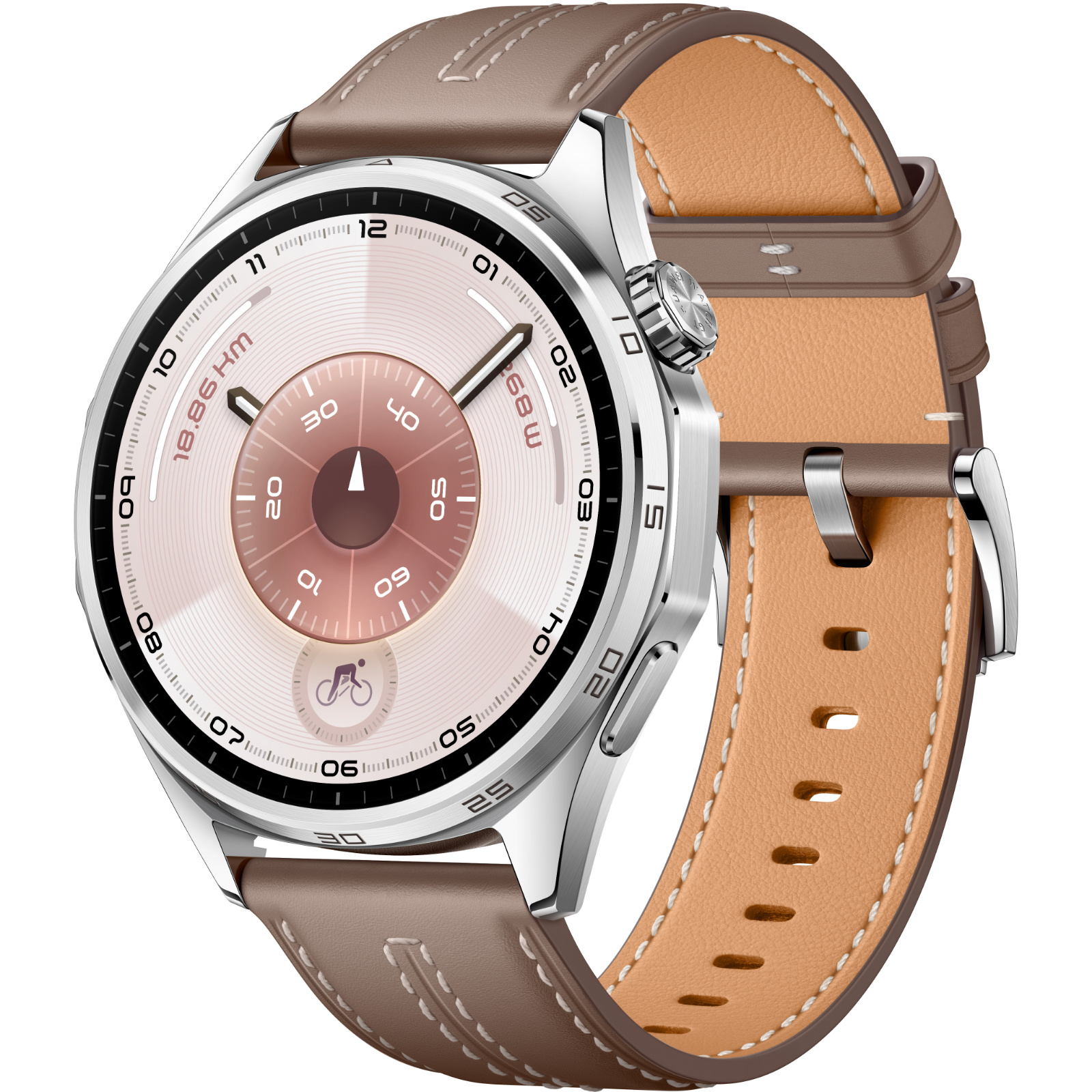 Huawei Watch GT 5 46mm Smart Watch - Brown with Stainless Steel case and Brown Composite Leather Strap 1.43 AMOLED Display - Up to 14 Days Battery Life - 5ATM IP69K Water Resistance - Dual-Band GPS - Huawei TruSense Health System - Bluetoo