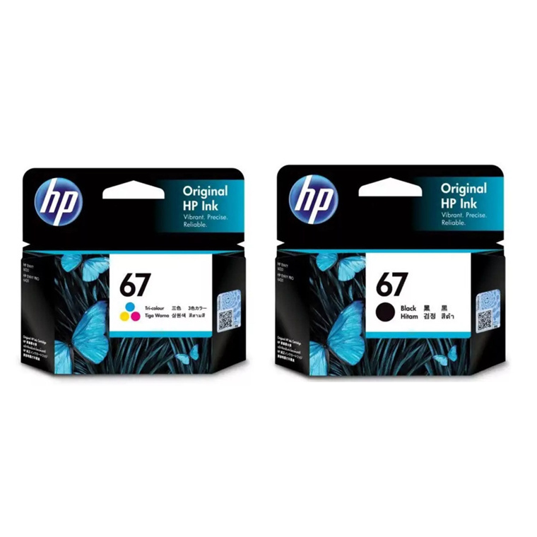 HP 67 Black + Tri-Colours Ink Cartridge Value Pack - Black 120 Pages & Tri-Colour Yield 100 Pages - for HP DeskJet 2330 / 2720 / 2721 / 2723 / 2820e / ENVY 6420 / 6020 Printer