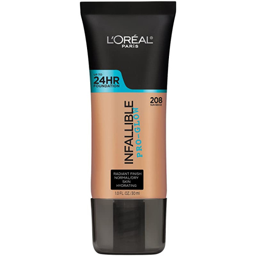 L'Oreal Paris L'Oréal Infallible Pro-Glow 24HR Foundation, Sun Beige 208, 1 fl oz (30 ml)