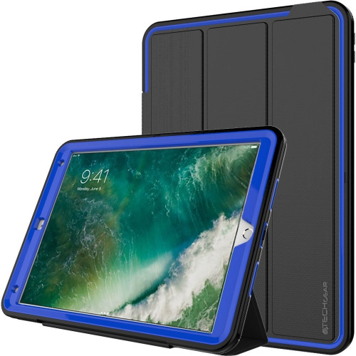 TECHGEAR TECHGEAR® D-FENCE Case for New Apple iPad Pro 27cm Slimline Shock Proof Tough Rugged Protective Armour Defence Smart with Detachable Screen Cover / Stand - Kids Schools Builders Workman [BLACK BLUE]
