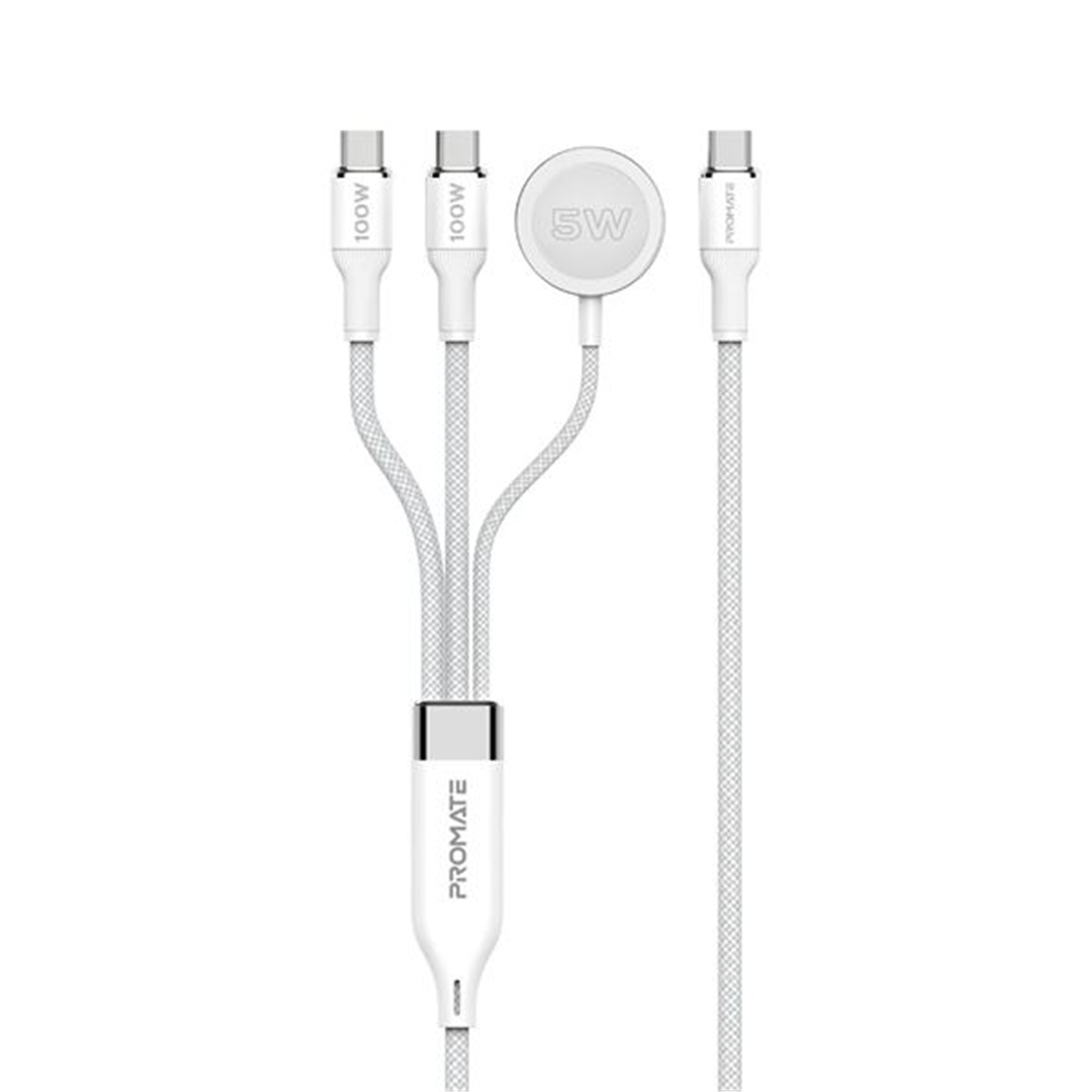 Promate 100W PD - 480Mbps USB-C Multi-Connector Cable - 1.4m - White Apple Watch Charger - 2x USB-C Connectors - Data & Charge