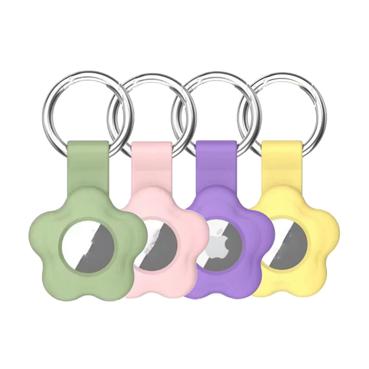 AirTag Silicone Flower Key Ring (2nd Gen/1 Gen) - 4 Pack Green / Pink / Purple / Yellow