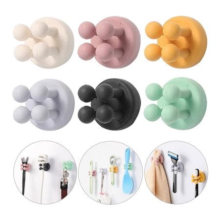 6 Pcs Silicone Toothbrush Holders, Multi-Function Hook Waterproof Self Adhesive Wall Mounted Single Hook for Hanging Key, Utility Plug Holder for Bathroom Kitchen Living Room Office