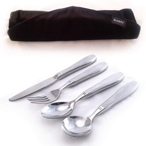 BunMo BUNMO Weighted Utensils for Tremors and Parkinsons Patients - Heavy Weight Silverware Set of Knife, Fork, 2 Spoons Travel Bag Adaptive Eating Flatware Helps Hand Tremor, Parkinson, Arthritis