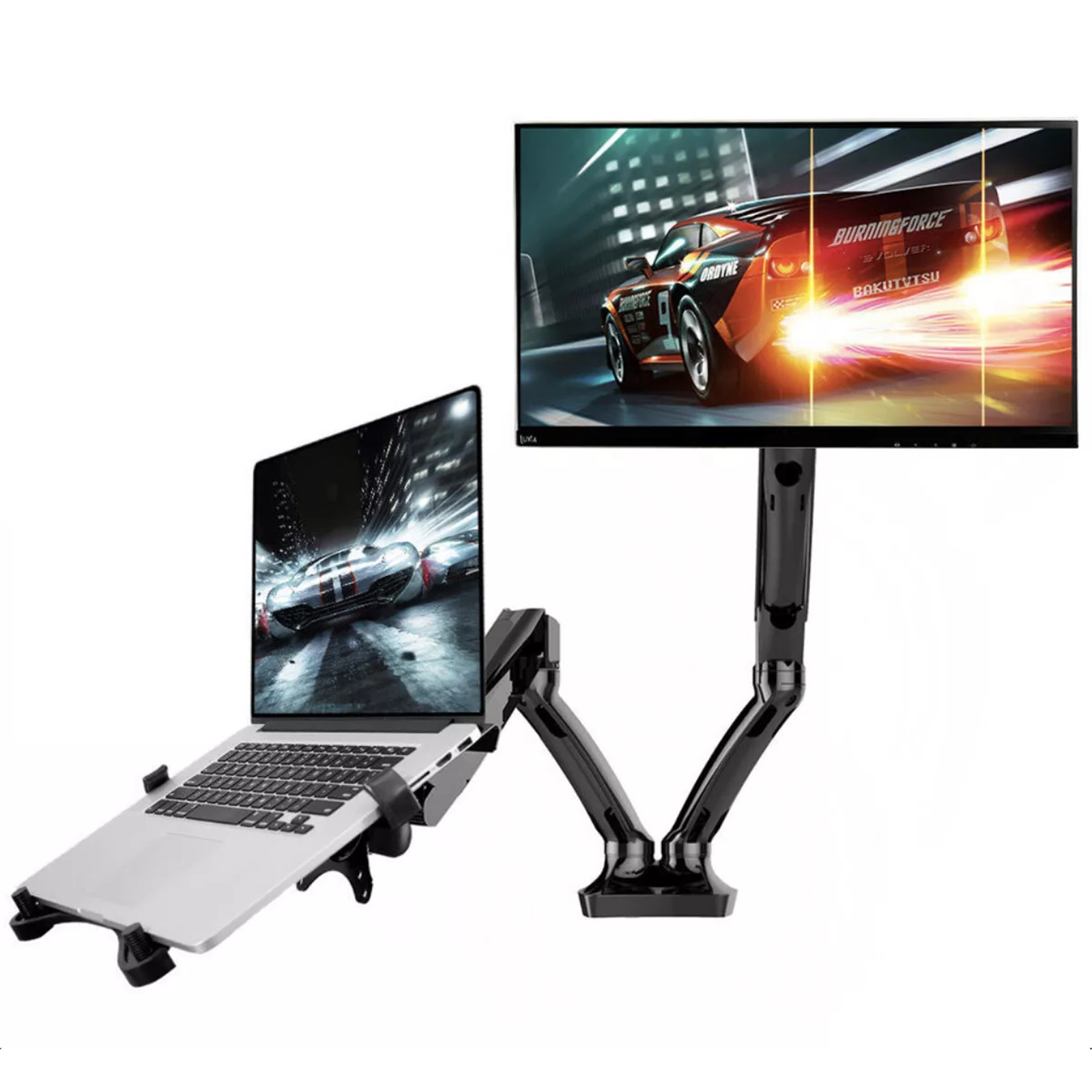Loctek Pro Mount, 10-30 Single Monitor With 10.1-17.3 Laptop Notebook Stand Ergonomic Gas Spring Arm Riser, Capacity 1.5-5KG, VESA 75 & 100mm /5 Years Warranty Display Bracket Desktop Mount