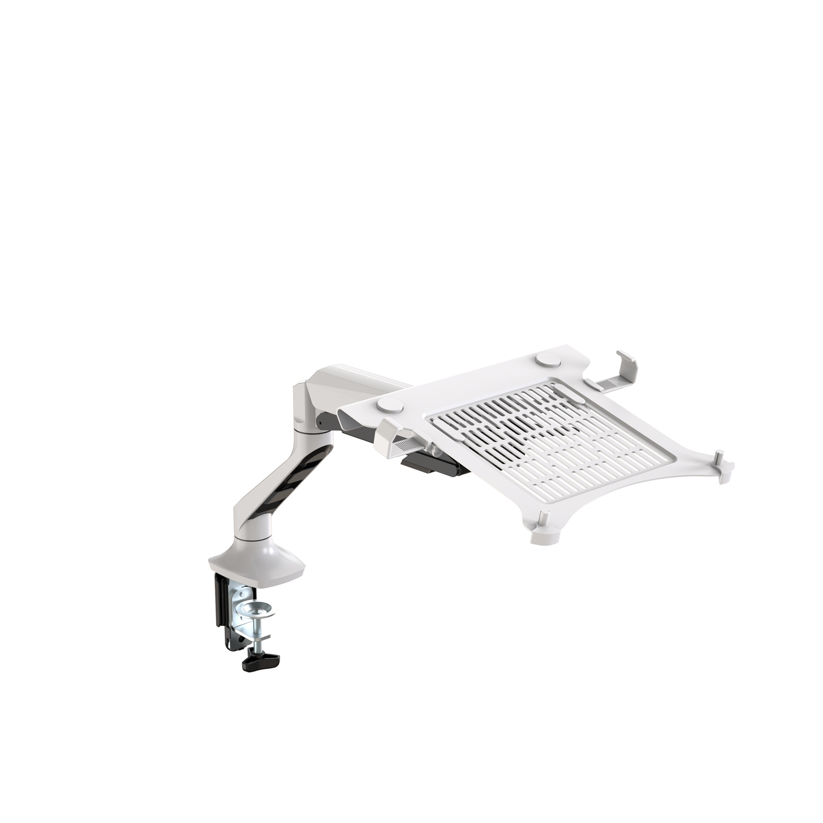 Loctek Pro Mount Gas Spring Laptop Stand Riser - Support 10.1-17.3 Notebook - White - Max Load 3-9 KG - Clamp Or Grommet Installation - 5 Years Warranty