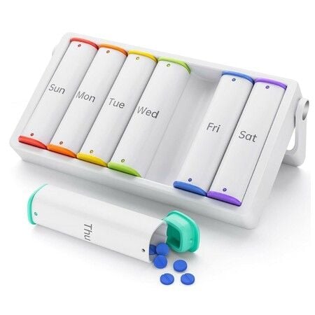 Weekly Pill Box 7 Day 2 Times a Day,Travel Pill Organiser Am Pm,Daily Tablet Organiser Dispenser,Portable Medication Organizer,Large Holder Container-White