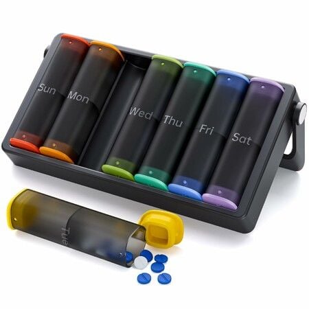 Weekly Pill Box 7 Day 2 Times a Day,Travel Pill Organiser Am Pm,Daily Tablet Organiser Dispenser,Portable Medication Organizer,Large Holder Container-Black