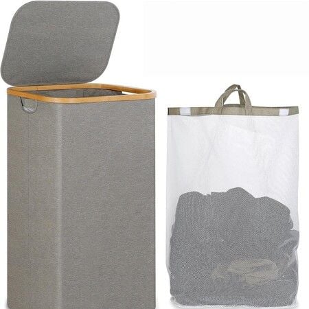 110L Large Laundry Basket with Lid,Handle And Lid,Collapsible Clothes Basket Organizer with Removable Inner Bag for Clothes Toys Towels Color Grey