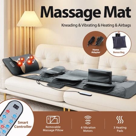 HOMASA Full Body Massage Mat Heated Shiatsu Neck Massager Shoulder Back Lumbar Traction Hip Leg Relax Stretch Airbags Vibration Motors