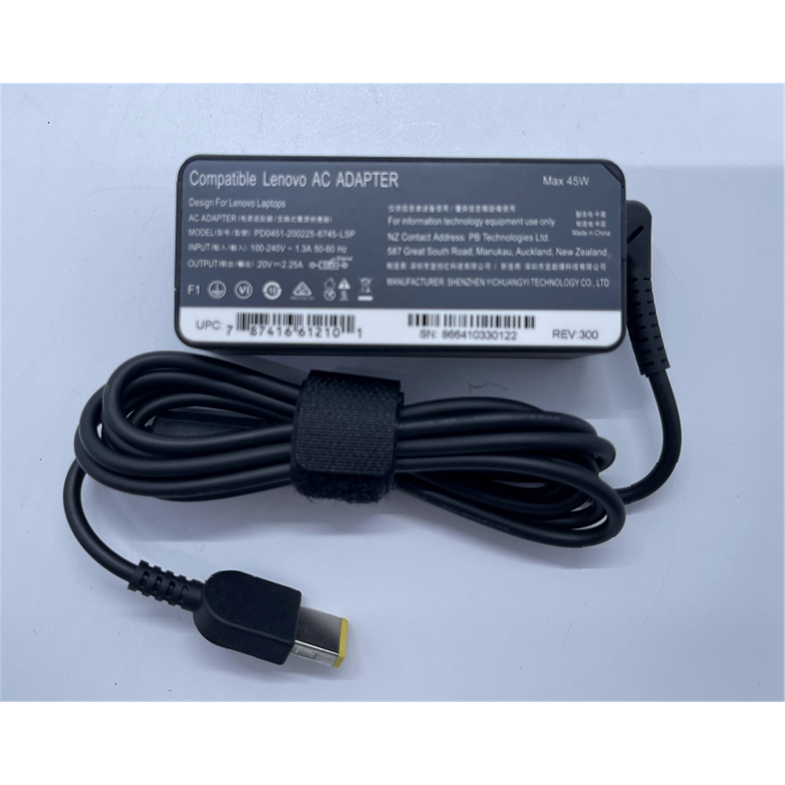 PB Laptop Power Charger For Lenovo 45W 20V 2.25A - USB Slim Tip Square Connector - Power cord not included