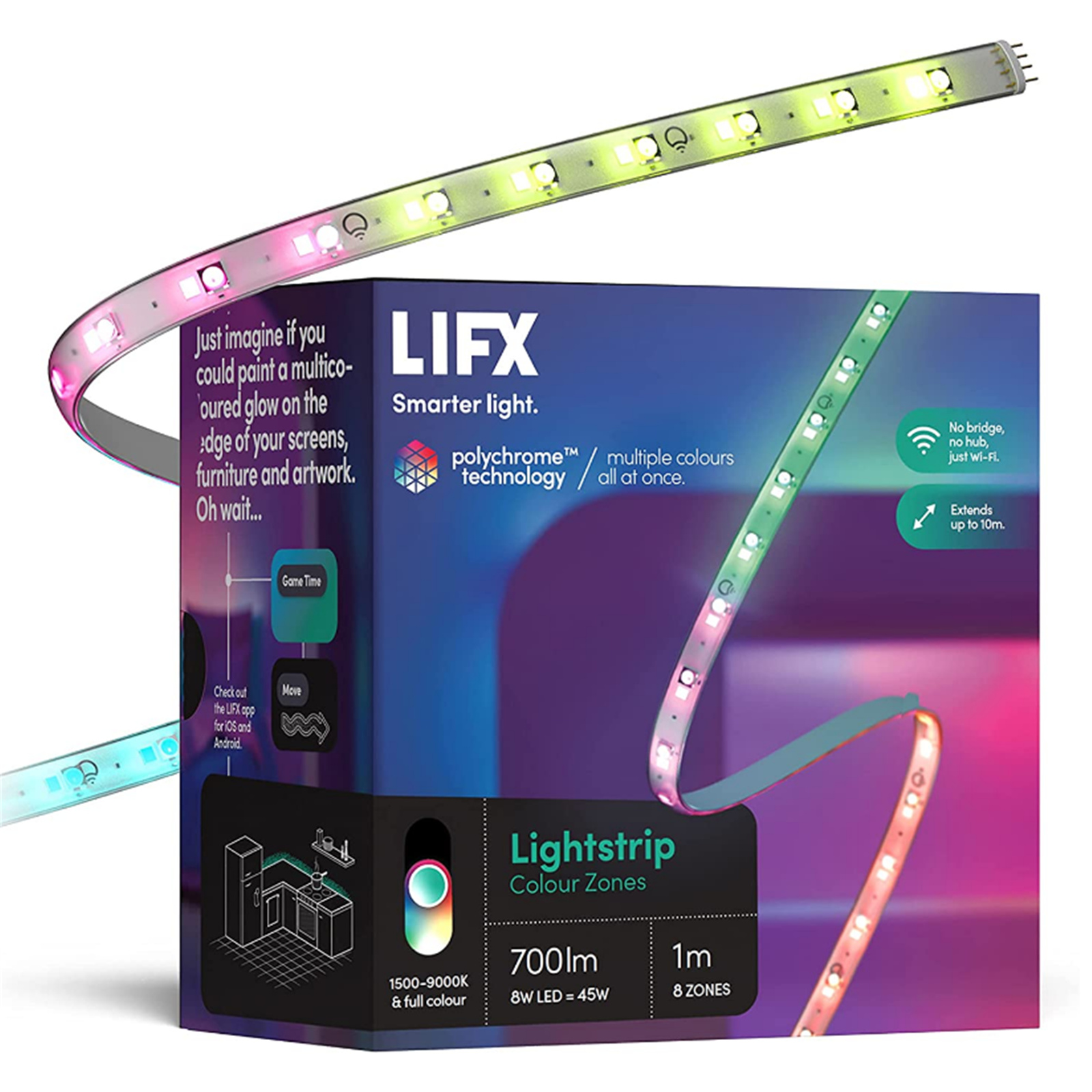 LIFX Z Colour Smart Light Strip Starter Kit 1M, 700 Lumens, (Extendable up to 10m), Color adjustable and dimmable