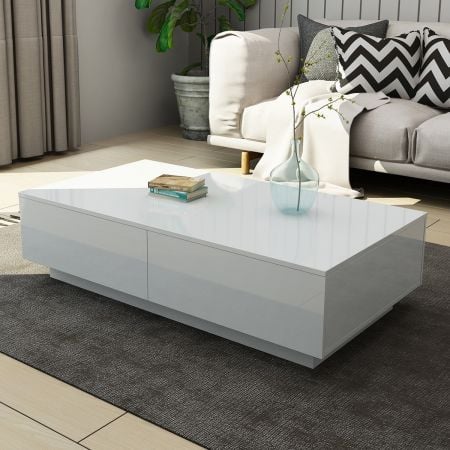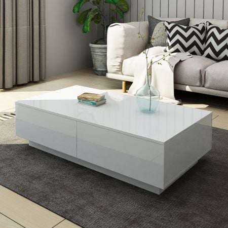 New Modern White Coffee Table 4-Drawer Storage Shelf High Gloss Wood Living Room Furniture