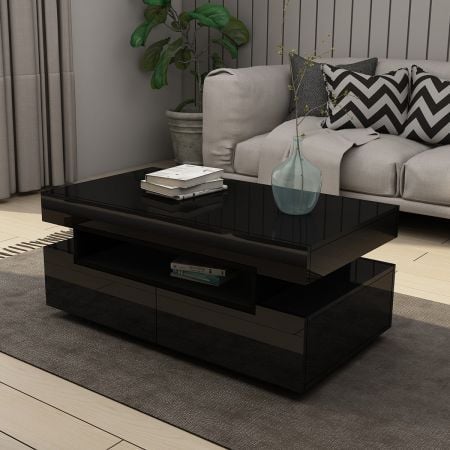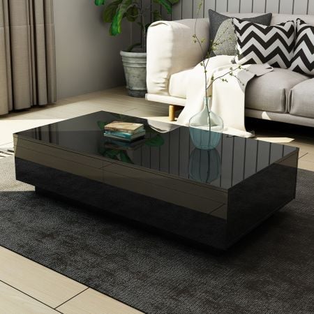 Modern Coffee Table 4-Drawer Side Table High Gloss Living Room Furniture - Black