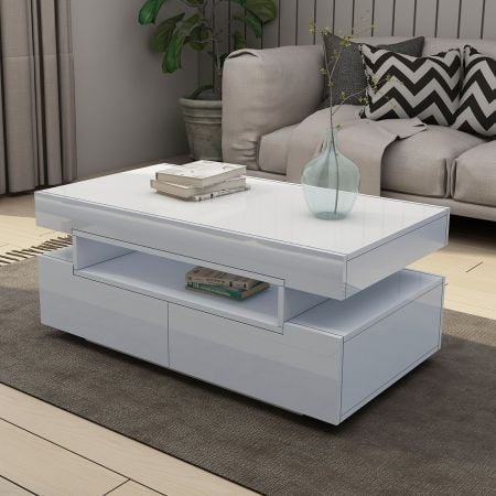 Modern White High Gloss Coffee Table Living Room Storage Furniture 2 Drawers 16 LED Colours